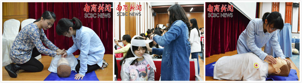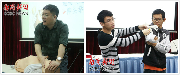 老师为同学们讲解急救方法(唐秀萍 梁雨威 摄)