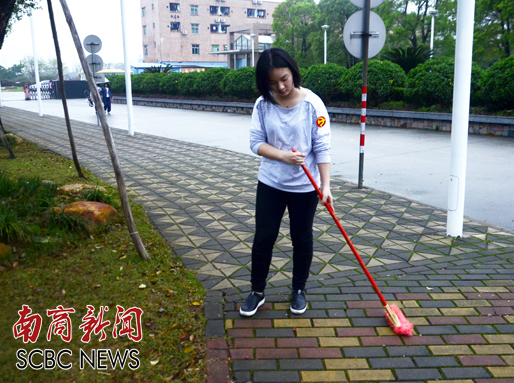 党员志愿者清扫校道 (陈锴进 摄)