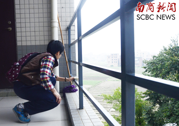 党员志愿者清洁栏杆 (陈锴进 摄)