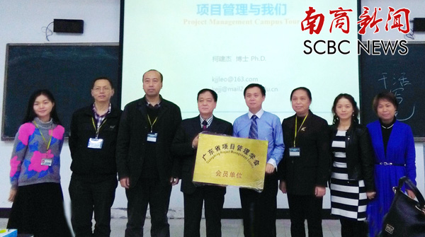 我校是广东省项目管理学会会员单位、战略合作伙伴。讲座的最后,柯建杰代表学会向我校授予“广东省项目管理学会会员单位”牌匾,副校长熊匡汉代表学校接受牌匾。 (管理学院 邓婉仪 郑泽琪 李铁成)