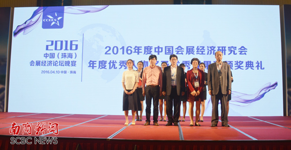本网讯 在4月9日至11日召开的“2016中国会展经济研究会年会暨中国(珠海)会展经济论坛”上,我校国际工商管理学院院长张玉明,会展经济系主任李铁成荣获多个奖项。其中李铁成获第八届中国会展经济研究优秀成果奖一等奖,张玉明获第八届中国会展经济研究优秀成果奖二等奖和“2015年度中国会展业优秀人物奖(本科)”。