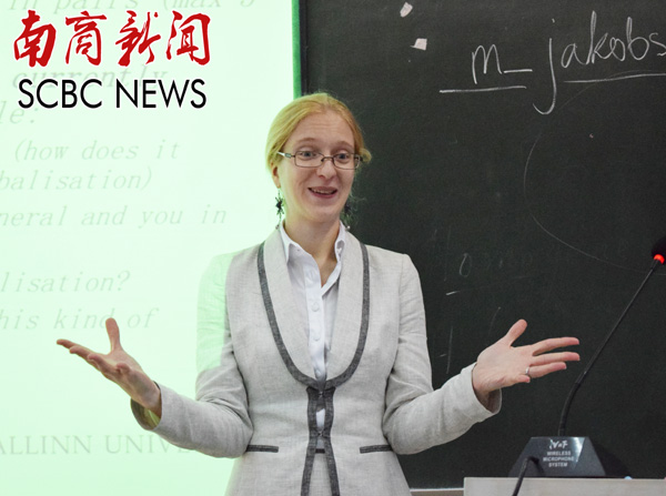 本网讯(记者 叶善恩 实习记者 吴欣洁)4月7日下午,来自爱沙尼亚塔林大学的博士夫妇Mari-liis Jakobson和Leif Kalev在E202举办了以“全球化”为主题的全英讲座。
