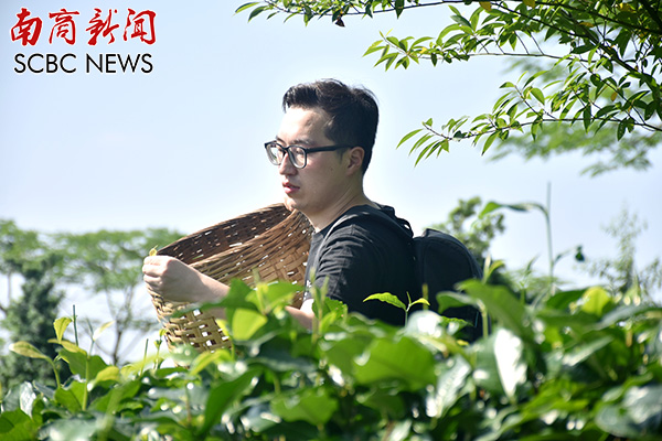 “快来看我这片茶叶,很美!”韩国留学生金完洙激动大喊。
