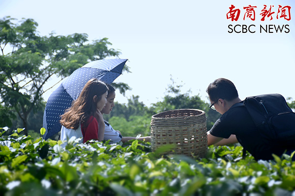 采完茶叶后,留学生们恋恋不舍地回头,沉浸在美丽的自然环境中。大家还拿出手机纷纷合影留念。