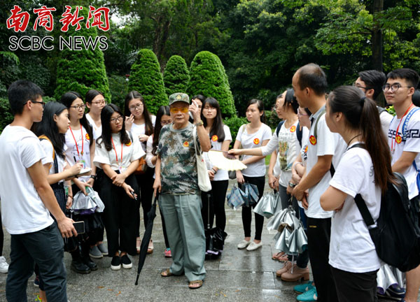 在广州起义烈士陵园,各学习小组在陵园附近寻找休闲健身的老干部进行访谈,了解烈士的革命经历和陵园的历史故事;在周文雍和陈铁军烈士塑像前,实地解读《刑场上的婚礼》,号召党员同志坚定信仰,忠诚爱党;在叶剑英元帅墓前,李天佑将军的参谋、叶剑英元帅的同乡王剑翔向大家讲述叶剑英的光辉事迹,并向叶剑英元帅敬献鲜花;在广州起义烈士墓前党员们重温了入党誓词;在“血祭轩辕”亭前,李禄玉老师解读了该亭的文化象征意义。3名学生党员吴惠、裴艳云、刘宗哲还全程担任解说员,为大家进行现场讲解。