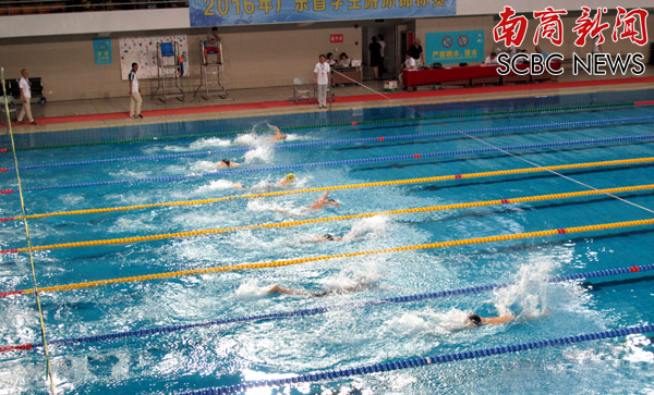 本网讯 6月3日至5日,由广东省体育艺术联合会主办、华南师范大学承办的2016年广东省大学生游泳锦标赛在华南师范大学游泳馆举行。全省41个院校派出队伍参赛,高手云集,竞争激烈。