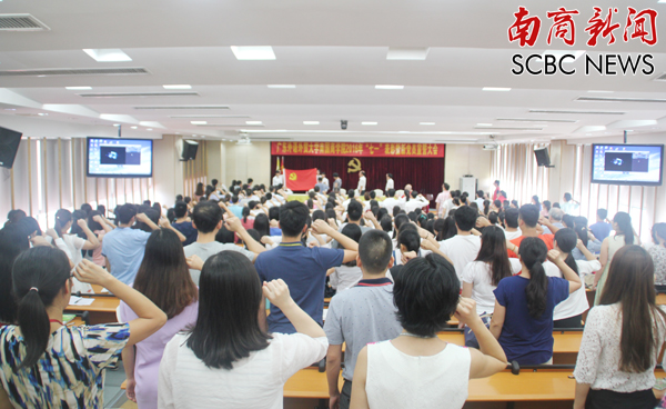 本网讯(记者 麦芷均)6月29日下午,我校于C201学术报告厅举行2016年“七一”表彰暨新党员宣誓大会,对我校2016年度先进基层党组织、优秀党务工作者、优秀教工党员、优秀学生党员,宣传工作先进单位、优秀通讯员、优秀学生记者进行表彰。党委组织部部长黄汉成主持会议。党委书记黎冬,副校长熊匡汉,党委副书记、副校长王心洁,党委委员杨林等出席。