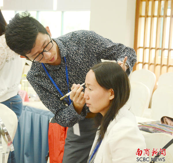 【编者按】俗话说:爱美是人类的天性。早在战国时期,化妆之风已经兴起。根据史料记载,在还没有特定的画眉材料之前,妇女用柳枝烧焦后涂在眉毛上。到了现代,化妆已经成为女性必备的生活礼仪。人们运用化妆品和工具,改善人物原有的“形”“色”“质”,增添美感和魅力。7月10日至15日,学校邀请日本好莱坞大学院大学资深高级美容师来校举办化妆艺术与形象设计培训。下面,请跟随记者的镜头一起来看下学员们通过化妆使自己变得更美的瞬间吧。 (刘阳)