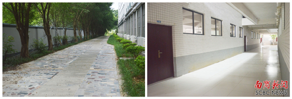 于细微处见温暖,从学生宿舍1栋至4栋后面有一条小路,学校对它进行了改造,同学们即使穿着拖鞋也不用担心不好走路了。而F座教学楼和G座教学楼一楼的走廊也进行了改造,原本的花坛拆除了,只为在下课高峰期为学生腾出一条宽敞的过道。