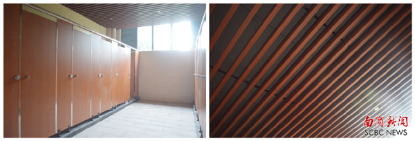 教学楼的洗手间,来了个大变身,不仅下水道全部重新安装,地板也做了防滑,就连天花板也进行了一番装饰呢。