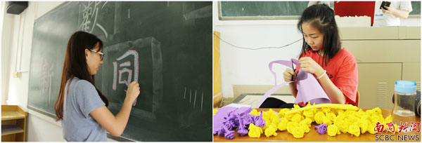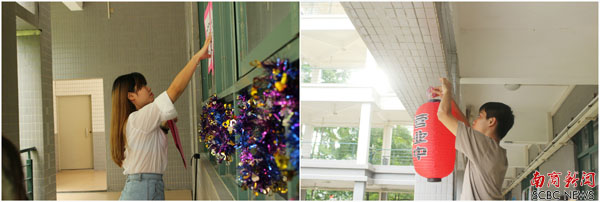 同学们在布置会场(陈漫 摄)