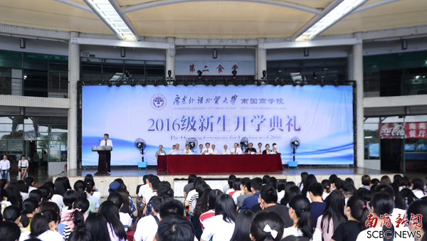 本网讯 (记者 林彩薇)金秋九月,秋高气爽。9月11日上午,我校2016级新生开学典礼在文化广场举行,新生大学第一课正式拉开帷幕。校长陈林汉,党委书记黎冬,常务副校长赖志立,副校长杨永强、王心洁、杨励以及学院、教学部和相关处室负责人出席本次典礼。典礼由黎冬主持。