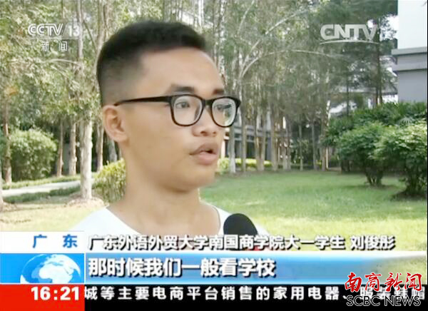 大一学生刘俊彤作为高考改革的考生接受采访(视频截图)
