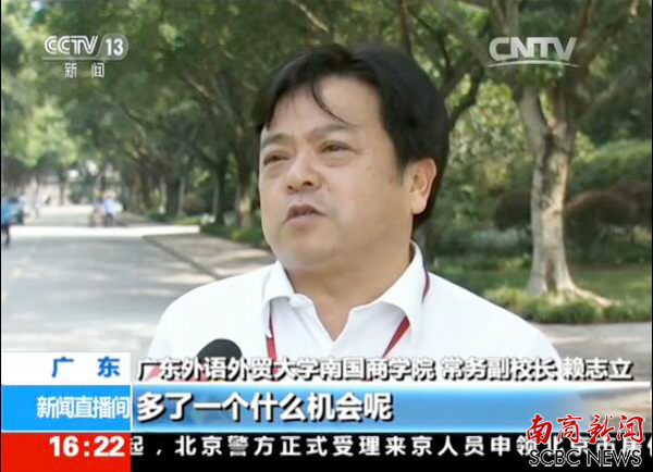 本网讯 近日,中央电视台《新闻直播间》栏目组来我校采访了常务副校长赖志立以及相关老师和学生代表,以我校为例,制作并在中央电视台播出了《高考改革观察:录取批次改革,促高等教育公平竞争》的新闻。