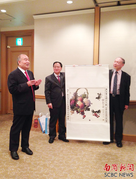 横滨商科大学校长小林雅人等对远道来访的宾客表示感谢;熊匡汉代表我校向对方赠送了寓意圆满吉祥的中国画以表祝贺。