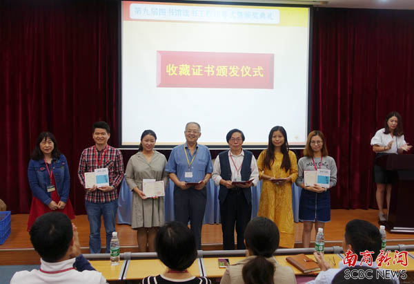 闭幕式上,图书馆陈文澜馆长首先总结了读书工程月开展的各项活动,并为师生们推荐了八个不同领域的入门好书。随后,她为我校六位向图书馆捐赠图书超过100册以上的老师颁发了收藏证书,他们是:经济学院院长李庚寅、东语学院副院长池圣女、中文学院唐晓敏教授、管理学院陈迪老师、校史办朱建亮教授、网络中心副主任陈锦辉。“赠人玫瑰,手有余香,捐赠图书是造福莘莘学子的高尚美德,其意义不言而喻。”陈文澜说。