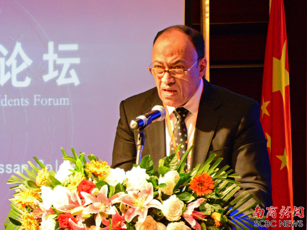 埃及亚历山大大学文学院院长苏莱曼博士发言(实习记者邓凯鑫 摄)