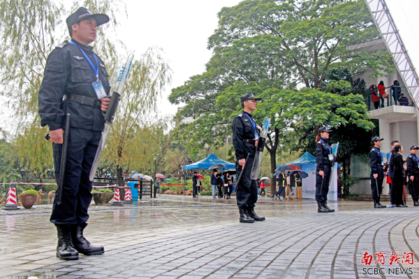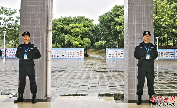 校庆日当天,行政楼嘉宾签到处,C栋楼下校友签到处,主会场湖边,主席台两侧,一个个挺拔的身姿,特勤分队的队员们用行动诠释了南国学子奉献学校、回报学校的赤诚。寒气袭人,特勤队员们岿然挺立,雨水打湿了他们的衣服,却打不湿他们的满腔热情。