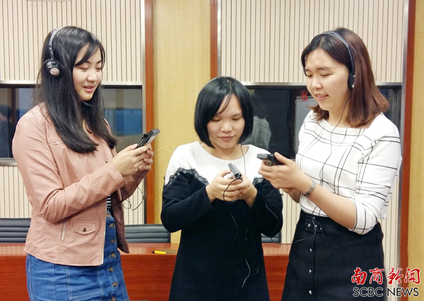 我校英文学院教师正在试用同传设备