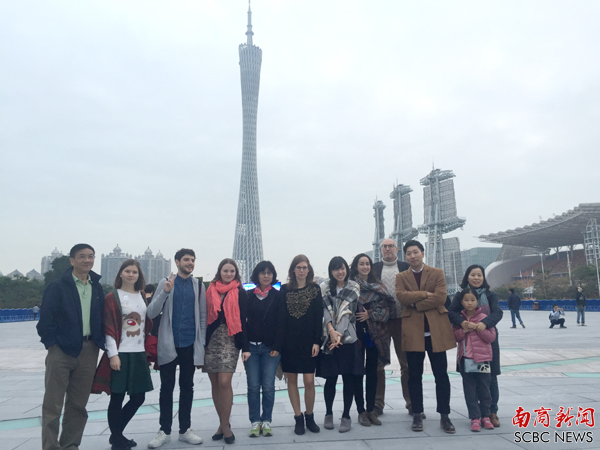 外籍教师在广州塔前合影留念 (温进业 供图)