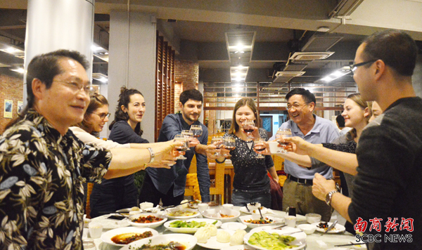 来自各国的外教举杯共庆佳节(连少芳 摄)