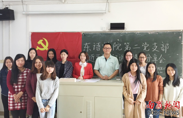2016年12月20日,东语学院第二党支部召开关于学习近日习近平总书记系列讲话精神分享会。东语学院第二党支部书记曹妍、辅导员邱礼生及党支部学生党员、预备党员、发展对象出席了此次分享会。