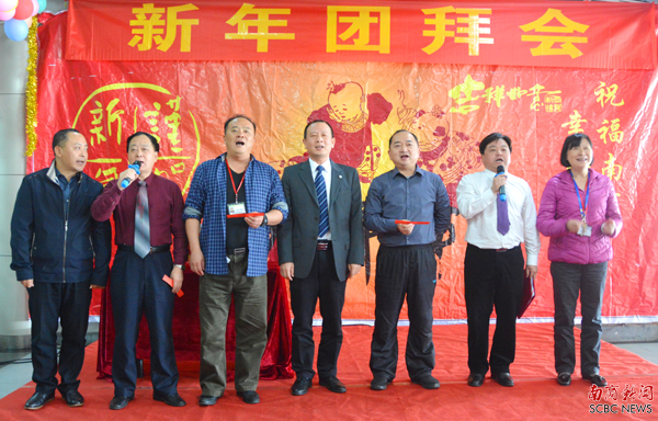 本网讯 1月6日上午,学校教工饭堂三楼大厅张灯结彩、喜庆祥和、暖意融融,学校党政领导班子成员和学科带头人、专业负责人、教学系主任及副科级以上干部欢聚一堂,共贺新春。团拜会由党办校办主任付鸿信主持。