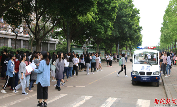 演练结束同学们在宿舍楼下集合 (卢思扬 摄)