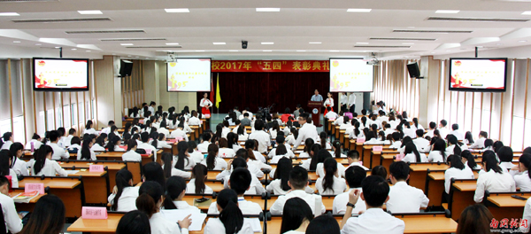 团委书记郭婷宣读了《关于表彰2016学年度“五四”先进集体及先进个人的决定》,对本学年度我校46个“五四”先进集体和1560名“五四”先进个人进行了表彰。受表彰的先进集体包括先进分团委、优秀基层学生会、优秀团支部和优秀社团等,先进个人则包括团学干部标兵、十佳团支书、优秀共青团干部、优秀学生干部和优秀青年志愿者等。同时,我校“雷锋月”活动、精品团日活动及校园文化精品等优秀项目和优秀个人也获得了表彰。