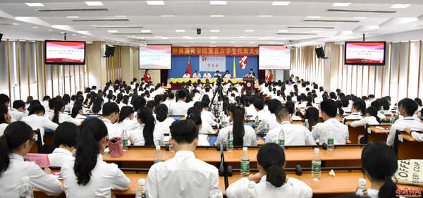 本网讯 (记者 黄嘉文 吴英杰)5月18日下午,我校第五次学生代表大会在学术报告厅召开,党委书记黎冬,常务副校长赖志立,副校长杨永强出席了大会。学生处、工会、团委负责人,以及各学院党组织负责人、团学指导老师和164名学生代表参加了本次会议。