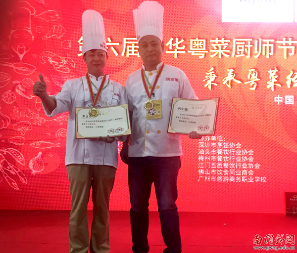 本网讯 近日,在CRE中国餐博会(广州琶洲会展中心)举办的2017中华粤菜创新厨艺大赛总决赛中,我校饮食服务中心厨师长何全祖以其精湛的厨艺荣获个人赛金奖。这是继2016年饮食服务中心厨师林彥森荣获“粤港澳十大名厨”称号之后,我校厨师在区域大型厨艺比赛中展现厨艺再夺桂冠的又一捷报。