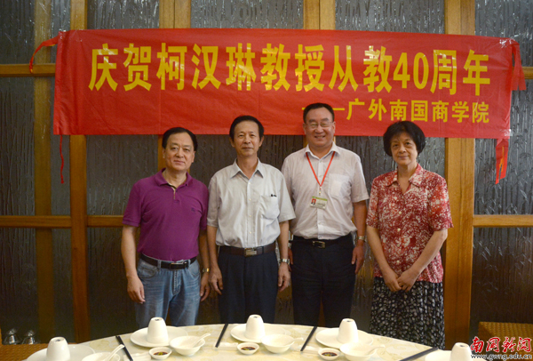 顾也力督学(右二)、熊匡汉副校长(左一)与柯汉琳教授夫妇合影 (刘阳 摄)