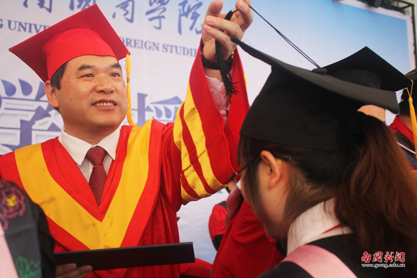 焦方太为毕业生拨穗 (唐秀萍 摄)
