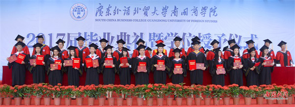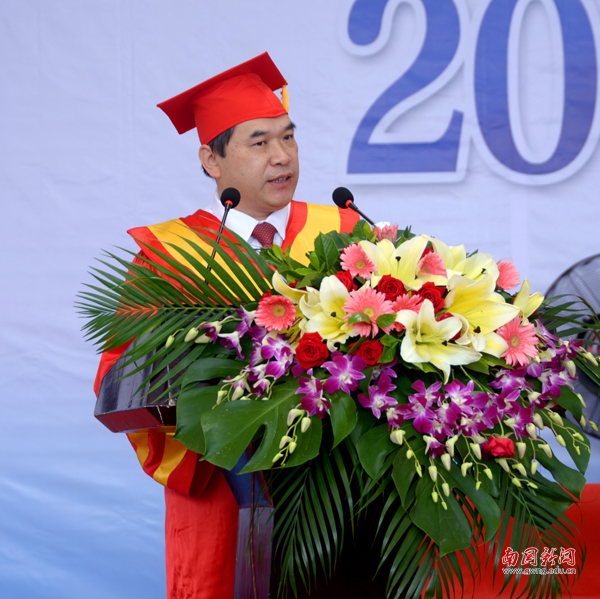 焦方太致辞,向我校2017届全体毕业生致以最热烈的祝贺和最衷心的祝福。他说,南国的每一个角落,都留下了毕业生们成长的足迹和青春的身影。他相信所有的毕业生一定会怀念那些与青春、与南国有关的,充满感动的日子。焦方太说,人生总会经历离别和重逢。但是,这次的离别是为了更好的出发,是为了下一次精彩的重逢。在离别之际,他向毕业生提出了三个希望。一是学会珍惜,懂得感恩,感恩是一种处世智慧,更是迈向成功的第一步。二是坚持梦想,不忘初心,没有梦想的青春不完整,没有梦想的人生不精彩,要坚守内心的那份真挚,不辜负梦想。三是精益求精,追求卓越,在今后的学习、工作过程中,追求“敬业、精业、奉献”的“工匠精神”,刻苦钻研,持续专注,守正创新,在平凡的岗位上创造出不平凡的业绩。