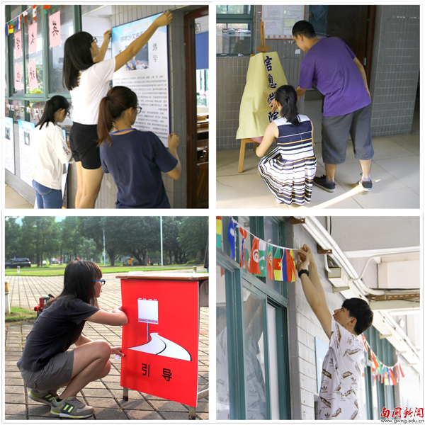 相比中文学院的婉约,信息科学技术学院的风格则是抽象简洁的,数字媒体专业的学生将自已的绘画设计作品陈列展示,颇有置身于艺术画廊的特别体验。考虑到天气炎热,管理学院还为新生准备了矿泉水和贴心的生活小手册。英语语言文化学院团总支负责人王晴晴告诉记者,今年的迎新计划早在暑假就已经启动,相比去年,今年的布置风格更加温馨,门上张贴的愿望树,写着师兄师姐对师弟师妹的祝福与期望,也表达了英文学院对新生浓浓的爱意。