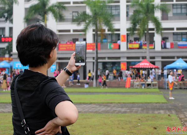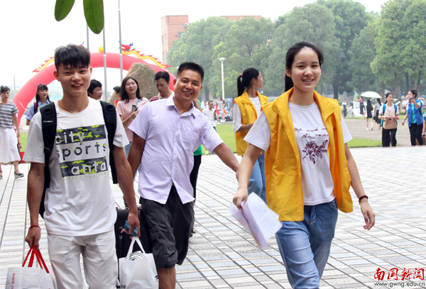 随同新生到来的亲友团在参观学校环境(陈迟 摄)