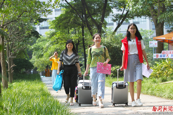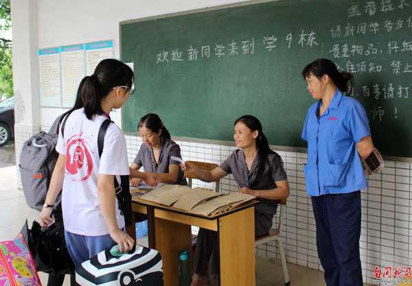 办完报到手续,师姐带路去宿舍咯(陈汝佳 摄)