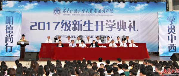 典礼伊始,焦方太致辞。他代表全校师生员工对新生的到来表示热烈欢迎,并衷心祝愿新生在美丽的南国校园里度过美好的大学时光。焦方太从“什么是大学?”“南国商学院是一所怎样的大学?”“我们应该如何度过大学4年宝贵的时光?”三个问题的思考引入,对新生提出5点希望。首先希望他们心怀梦想,经常仰望星空,叩问自己的心灵,树立人生高远的梦想并为之努力,收获人生的精彩。其次希望他们勇于担当,勇敢承担社会责任,用自己的知识和技能去履行责任,使自己成为社会进步的推动力量,成为造福人民大众的有用之才。三是希望他们脚踏实地,远离浮躁,潜心求学,勤于自省,不让青春留有遗憾,要让人生绽放光芒。四是希望他们放眼世界,学好一门外语,把自己培养成为有合作精神、有跨文化交际能力的全球公民。五是希望他们传承创新,传承和坚守南国”批判、创新、务实“的大学精神,做自己的原创,把人生的主动权掌握在自己手中。
