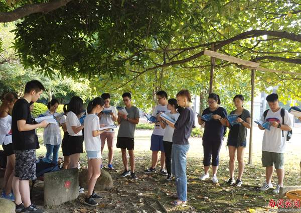 本网讯 当清晨的阳光洒满校园,学生们在树下、教学楼前围成一圈,在外教的带领下大声地读着外语。花香鸟鸣与琅琅书声相映成趣,这是西方语言文化学院户外晨读的现场。