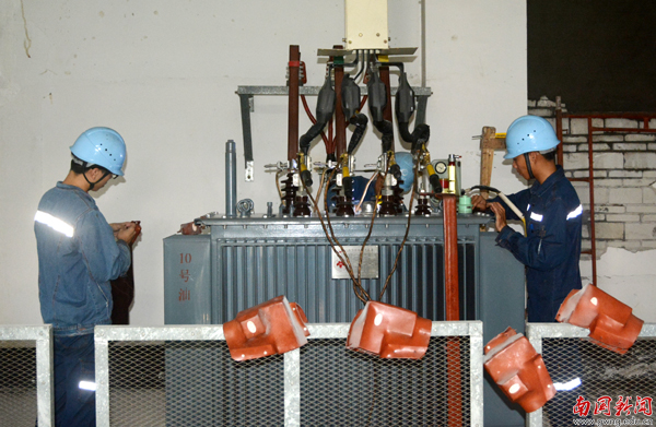 本网讯 8月25日上午,随着学校改电总指挥、副校长杨永强一声令下,南国商学院新旧供电线路转换正式开始。学校正式启用“汉田F14”专用供电线路,告别了过去高峰用电紧张的日子,用电质量得到全面提升。