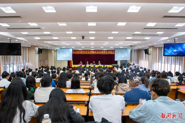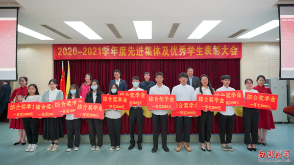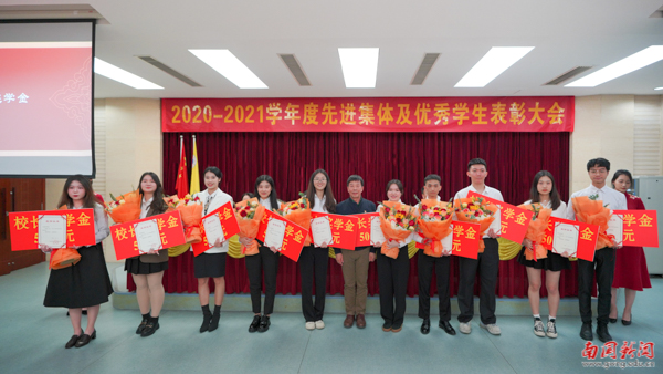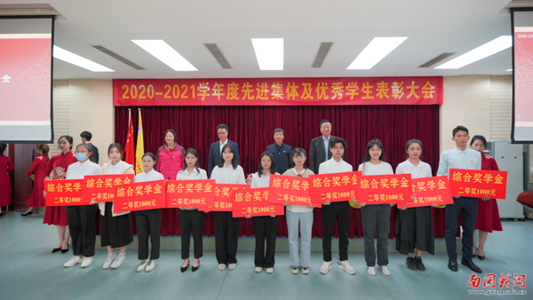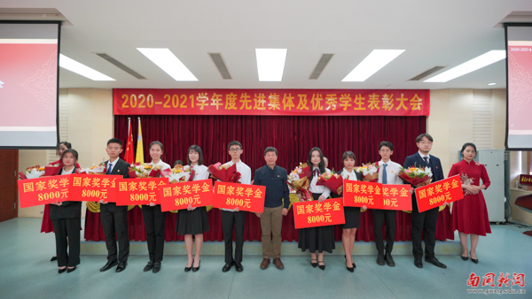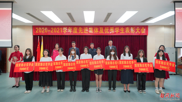 大会依次对国家奖学金、国家励志奖学金、校长奖学金、优秀学生奖学金获得者,以及“大学生年度人物”“三好学生”等荣誉获得者进行表彰。其中,9名同学获得国家奖学金,255名同学获得国家励志奖学金,10名同学获得校长奖学金,1308名同学获得2020-2021学年度优秀学生奖学金,10名同学获得第二届“大学生年度人物”,2433名同学被分别授予2020-2021学年度“三好学生标兵”“三好学生”“社会工作优秀分子”、“学业表现优秀分子”以及“文体活动优秀分子”等荣誉称号。