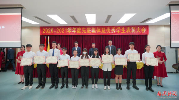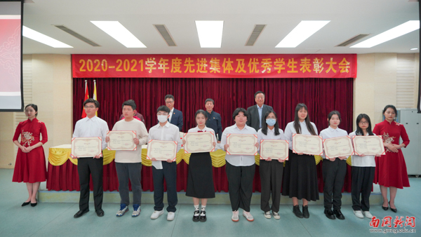 校领导为“三好学生”等荣誉获得者颁奖(马冀韬 摄)