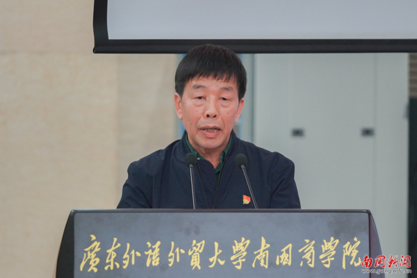 国家奖学金获得者、2019级中国语言文化学院汉语言文学专业的林颖作为学生代表发言。她对学校和老师的悉心栽培深表感激,分享了自己在学习上的心得体会。“行是知之始,知是行之成,我们要立足南国国土,成长为以知促行,以行促知的探索者”。林颖表示,为了达成知行合一,需要做到三点,一是文体并重,在自律中成长;二是扎实学术科研,在探索中收获;三是投身社会实践,在反思中前行。