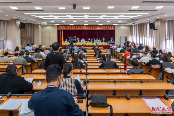 本网讯 12月16日下午,我校第三届教职工代表大会暨工会会员代表大会第四次会议(以下简称“双代会”)在C201学术报告厅举行。“双代会”正式代表、特邀代表和列席代表参加会议。