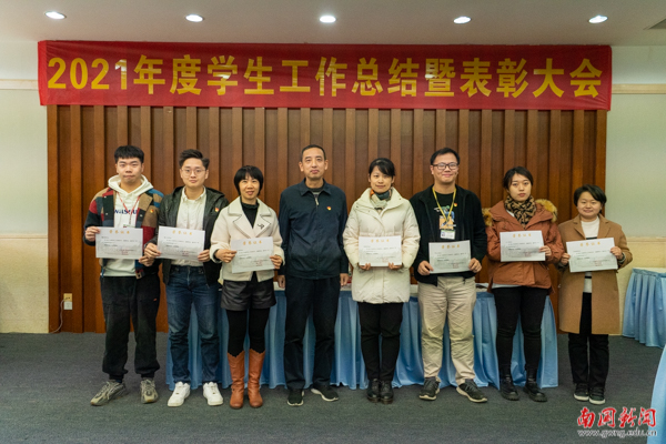 在表彰环节,与会领导分别为获得学校学生工作先进集体、学生工作优秀案例、学生工作研究先进个人等先进集体和优秀个人颁奖。
