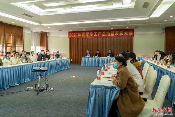 会上,学生处处长卢少勇围绕学工党团建设、疫情防控、辅导员队伍建设、网络思政教育、学风建设、学生心理健康教育、学生资助、校园文化建设等方面,对过去一年工作进行全面总结,感谢全体学工干部一年来的辛勤付出,并勉励大家继续努力,共同促进学校学生工作迈向新台阶。