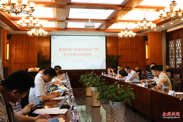 本网讯 3月26日,省校园安全工作督导检查组来我校开展安全检查。当天下午,中山大学党委保卫部副部长、保卫处副处长古添雄担任检查组组长,带领来自中山大学、广州美术学院、广东财经大学、仲恺农业工程学院的检查组成员在我校开展校园安全座谈。我校党委副书记、副校长赵福春主持座谈会,学校相关职能部门负责人出席会议。