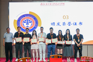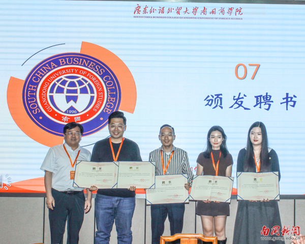 校领导为阳江校友会颁发名誉会长证书及聘书(黄家彤 摄)