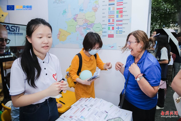 现场,来自欧盟及其27个成员国的驻华外交使团通过文化展览、音乐和舞蹈表演、美食品尝、互动游戏等丰富多彩的文化活动,向广大市民朋友展示了欧盟文化多样性、可持续性及其包容性。英文学院和西语学院志愿者们充分发挥专业所长,在各展位参与前期筹备、协助翻译、问答互动、派发礼品等环节,帮助市民们更好地了解和体验欧盟文化,展现出了甘于奉献的美好精神品质。