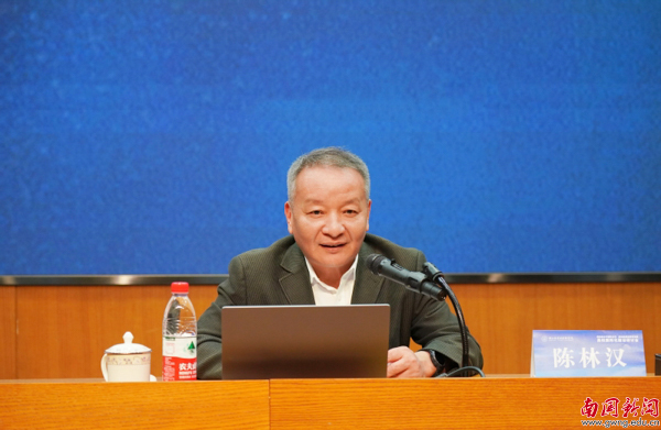 陈林汉教授作报告发言,发言聚焦“普通高等学校教育国际化的挑战与未来”。他指出,高校教育国际化是一个多赢的过程:它不仅对学生和教师个人的成长和发展具有重要意义,也对大学的整体发展和社会的长远进步起到了积极的推动作用。通过教育国际化,可以培养出更多具有国际视野、跨文化交流能力和全球竞争力的人才,为全球化时代的挑战做好准备。他认为高等教育应整合国际视角,提升国际认可度,并通过学生和教师的国际化、课程国际化以及科研国际化来实现这一目标。